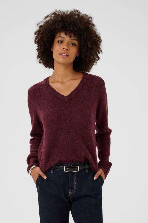 Pullover med v-hals fra Fransa. Flettet mønster, lange ermer og hofte lengde. Composition: 50% Viscose,28% Polyester,22% Nylon Fit: Regular fit, hip lenght, lon sleeve