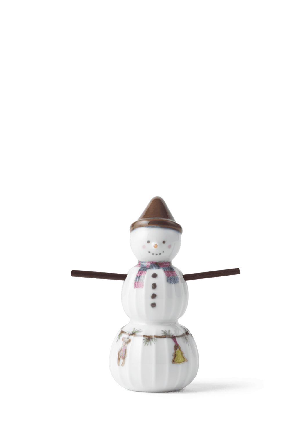 Juletradisjoner og håndverkstradisjoner i herlig forening. Med familien av snømenn fra Kählers juleserie Hammershøi Christmas bringer du enkelt og autentisk julestemningen inn i boligen med glade smil og hyggelige julemotiver som matcher seriens øvrige deler og fullender julehyggen. Samtidig kan du nyte nostalgien i Kählers håndlagde designtradisjoner. Ta en tur i hagen, parken eller skogen og finn dine egne små kvister som kan brukes som armer til seriens søte figurer. Kanskje som en ny, koselig juletradisjon den 1. desember. På den måten blir snømennene enda mer personlige og meningsfulle. Vær oppmerksom på at de medfølgende armene til både den stående og hengende familien av snømenn utelukkende er vedlagt som inspirasjon til hvordan du kan personliggjøre dine Kähler-snømenn i din helt egen DIY-stil. Snøgutten har på seg en liten, sjarmerende lue, et varmt skjerf og en halskrage, for det er viktig å ikke fryse – selv om man er en snømann. Han måler 7 cm i høyden og 3,5 cm i diameter og er utformet i myke linjer med Hammershøi-seriens ikoniske riller, som kjennetegner Hans-Christian Bauers servise og bordpynt. Høyde 7 cm Diameter 3,50 cm
