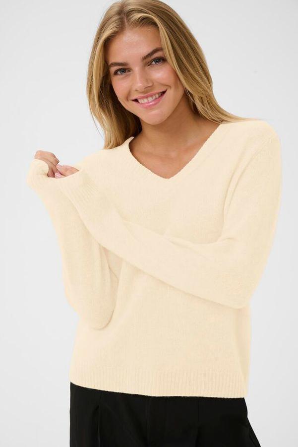 Pullover med v-hals fra Fransa. Flettet mønster, lange ermer og hofte lengde. Composition: 50% Viscose,28% Polyester,22% Nylon Fit: Regular fit, hip lenght, lon sleeve