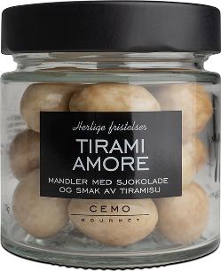 Mandler med sjokolade og tiramisusmak. En liten smak av Italia. Sprø mandler dekket med sjokolade og en mild smak av tiramisu. Passer som liten snack, til dessert eller som gave. Ingredienser: Sukker, mandel 20%, kakaosmør, helmelkspulver, kakaomasse, mysepulver ( melk ), laktose, emulgator ( soyalecitin ), aroma (tiramisu, vanilje),overflatebehandlingsmiddel E904, glukosesirup, modifisert tapiokastivelse, vegetabilske oljer (kokos, raps). Kan inneholde spor av hasselnøtt, cashewnøtt,paranøtt og pekannøtt