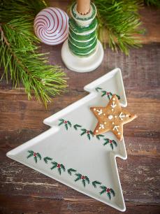 Berry Serveringsfat fra Bloomingville, formet som et juletre og fremstilt i stentøy, er et sjarmerende fat, med julemotiv. L24,5xH2xW26 cm