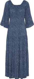 Chantel-kjolen er en lang og feminin kjole med et lett bohemeuttrykk. Den har en rund hals og trekvart ermer med en bred rysjekant, som gir bevegelse og en myk fall. Smockkanten ved midjen markerer formen på en naturlig måte, mens resten av kjolen faller løst og lett ned over kroppen. Silhuetten gir et ubesværet uttrykk, som gjør kjolen behagelig å ha på hele dagen. Kvaliteten er laget i myk LENZING™ ECOVERO™ viskose, som føles lett mot huden og gir stoffet et flott, levende fall. Stylingtips Bruk den alene med sandaler på varme dager – eller style den med en genser eller dongerijakke, når det blir litt kjøligere. Materiale & kvalitet 100% LENZING™ ECOVERO™ viskose LENZING™ og ECOVERO™ er varemerker tilhørende Lenzing AG. Passform & mål Løstsittende passform Lengde: 138 cm i størrelse M Ermelengde: 59 cm i størrelse M Kvalitet: LENZING™ ECOVERO™ viscose 100%