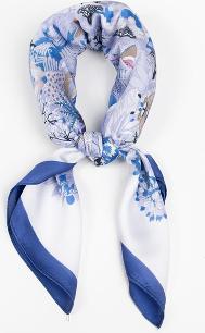 Et stilfullt lite skjerf i blåtoner med kunstnerisk og detaljrikt mønster. Dette skjerfet er laget i 100% polyester og måler 70 x 70 cm, perfekt som halsskjerf, hårskjerf eller dekorativ detalj på vesken. Den blå fargepaletten kombinert med det unike motivet gir et moderne og eksklusivt uttrykk. Et lite skjerf som løfter antrekket og passer både til hverdagsbruk og mer elegante anledninger.
