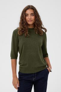 KAcuba pullover med 1/2 ermer fra Kaffe. Flettet mønster i hals og rygg, med ribbet kant i ermer. Materiale: 47% Acrylic,35% Polyester (Recycled),13% Polyamide,5% Wool Fit: Regular fit, 1/2 sleeve