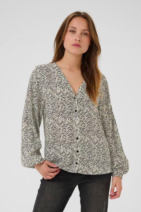 Super fin bluse med påsydde roser fra Culture. Blusen har korte ermer og vanlig lengde. Composition: 100% Polyester Fit: Casual fit, regular length, short sleeve