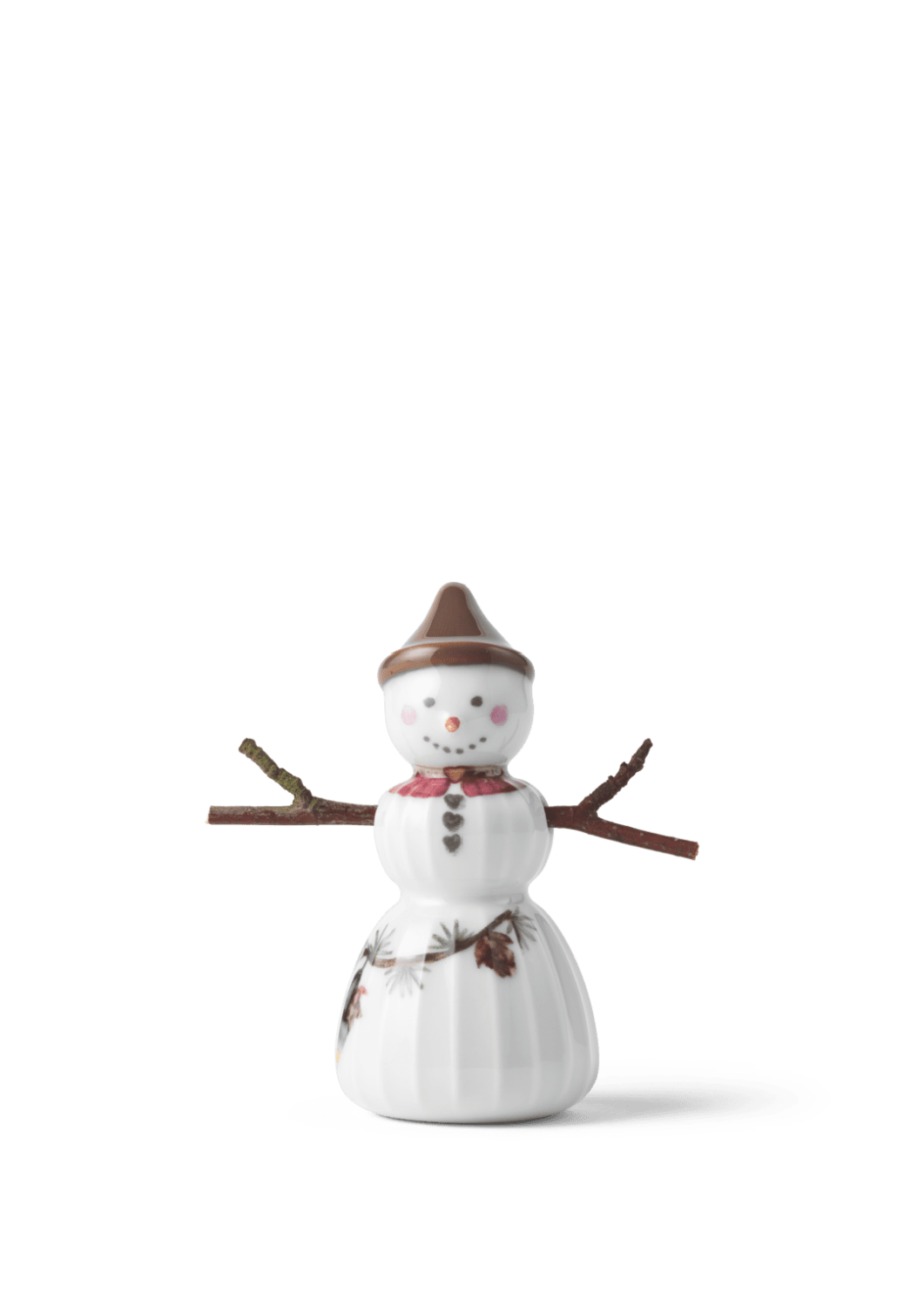 Juletradisjoner og håndverkstradisjoner i herlig forening. Med familien av snømenn fra Kählers juleserie Hammershøi Christmas bringer du enkelt og autentisk julestemningen inn i boligen med glade smil og hyggelige julemotiver som matcher seriens øvrige deler og fullender julehyggen. Samtidig kan du nyte nostalgien i Kählers håndlagde designtradisjoner. Ta en tur i hagen, parken eller skogen og finn dine egne små kvister som kan brukes som armer til seriens søte figurer. Kanskje som en ny, koselig juletradisjon den 1. desember. På den måten blir snømennene enda mer personlige og meningsfulle. Vær oppmerksom på at de medfølgende armene til både den stående og hengende familien av snømenn utelukkende er vedlagt som inspirasjon til hvordan du kan personliggjøre dine Kähler-snømenn i din helt egen DIY-stil. Snøjenta har på seg en liten, sjarmerende lue, et varmt skjerf og en halskrage, for det er viktig å ikke fryse – selv om man er en snømann.