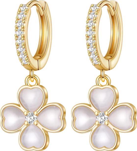 Små hoops med strass og en hengende blomst.
