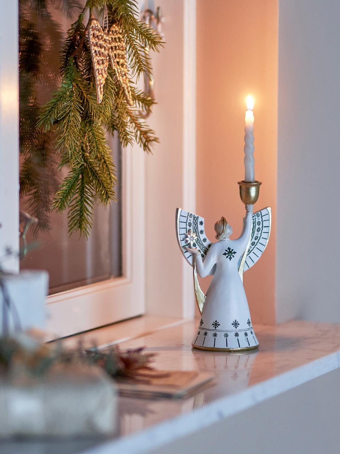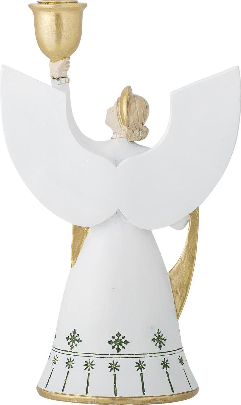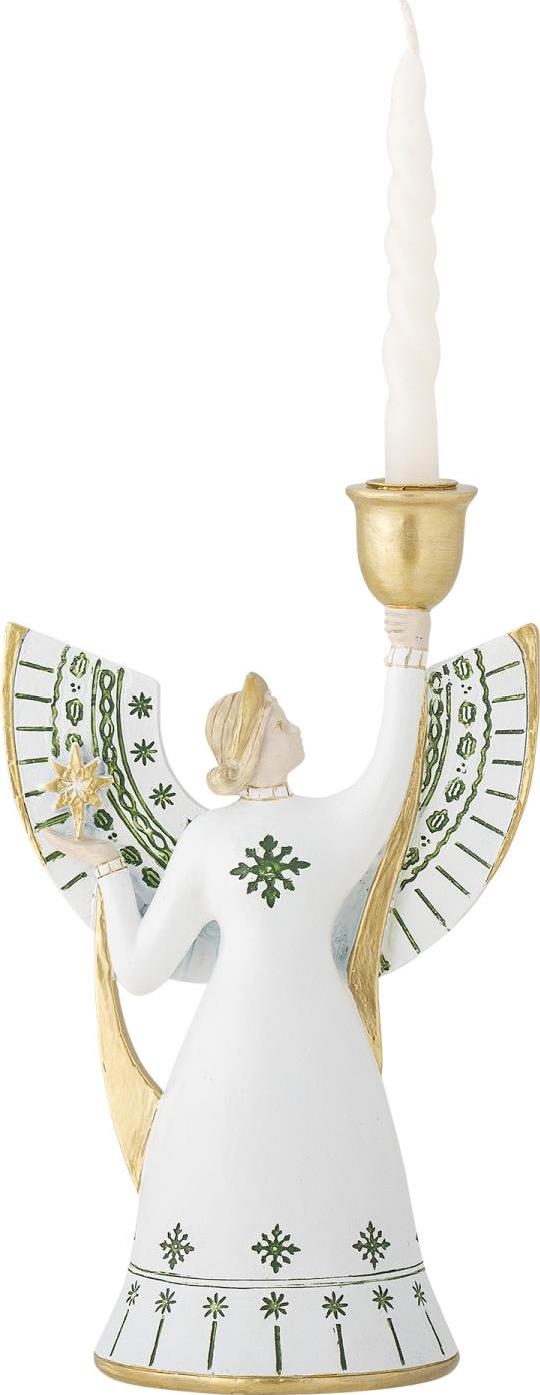 Evangeline Lysestage fra Bloomingville er en smuk, håndmalet lysestage fremstillet af polyresin. Designet forestiller en elegant engel i hvid med grønne og gyldne detaljer, der bringer en festlig stemning ind i hjemmet. Perfekt til julebordet eller som en del af en dekorativ opsætning, hvor den tilføjer varme og charme til din indretning.