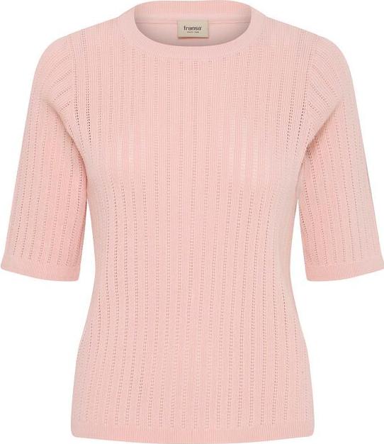 Strikket topp med korte ermer, rett fasong og rund hals. Vertikale, diskrete strukturstriper gir et lett og mykt uttrykk.
