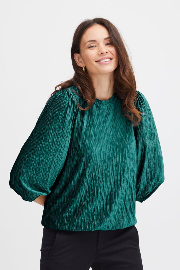 Flott Bluse fra Fransa med rund hals , strikk nede . 3/4 erm med strikk