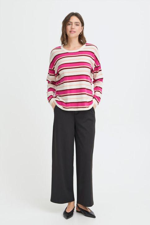 Genser fra Fransa, i striper med lekre farger. Den har vanlig passform, lang arm og hoftelengde. Perfekt hverdagsgenser.