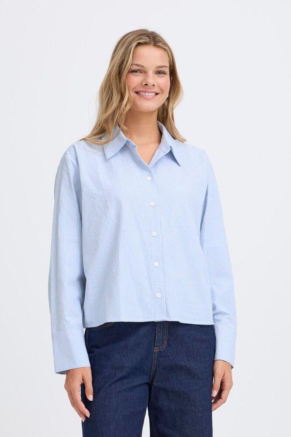 Skjorte med strass fra Fransa. Lange ermer og kort lengde.