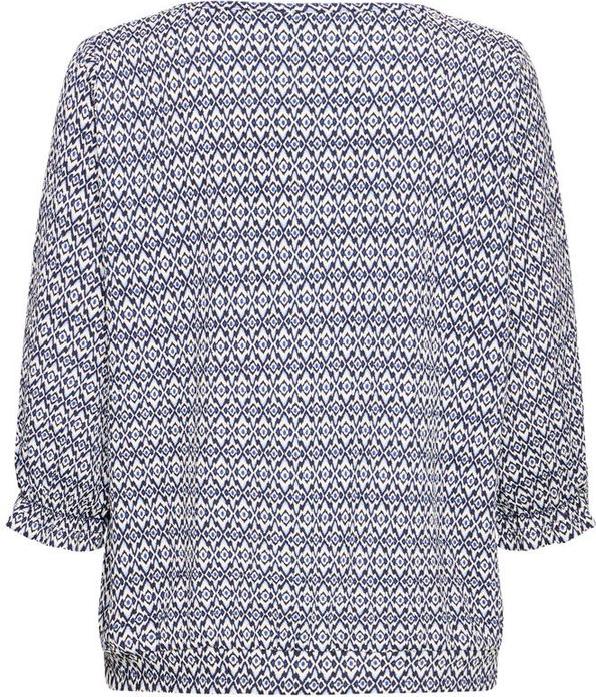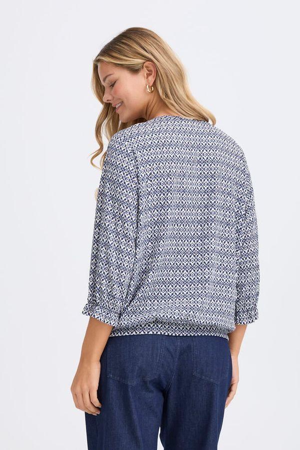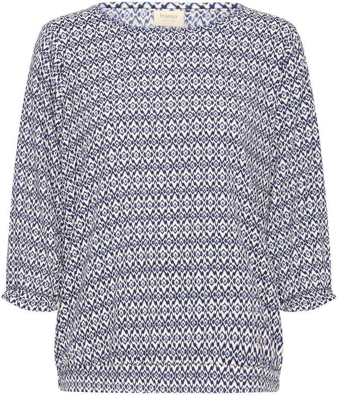 FRsloane tee 1 fra Fransa. Mønstret topp med rund hals, strikk i ermene og hofte lengde.