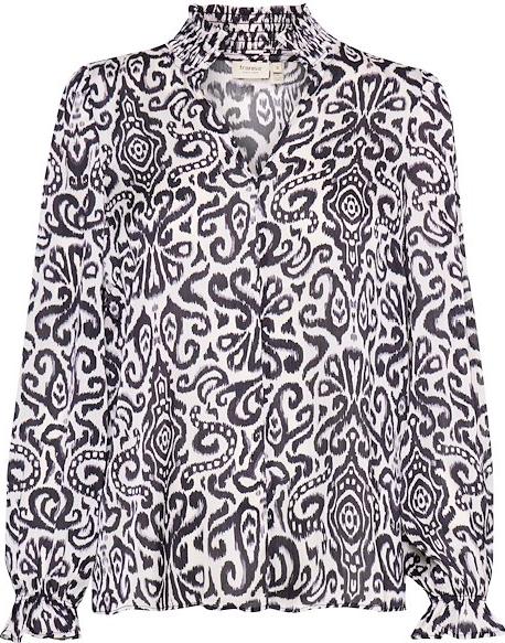 Bluse fra Fransa med Høy hals med V Strikk med Volang nede på ermer