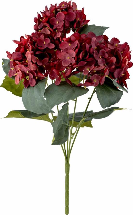 Hydrangea Artificial Stem by Bloomingville exudes enchantment with its dense clusters of deep red flowers. Carefully designed with attention to detail, this artificial hydrangea requires no water or pruning, ensuring that this magnificent flower remains fresh and inviting year after year. Shape the stem before use to bring out the natural look of the plant and adapt it to your personal decor.