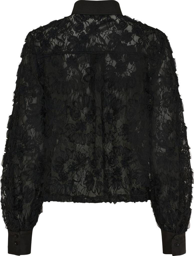 Kikki Shirt er en feminin skjorte med et unikt uttrykk. Den gjennomsiktige blondeeffekten gir en lett og luftig følelse, mens den klassiske skjortekragen og den skjulte knappelukkingen gjør designet tidløst og allsidig.