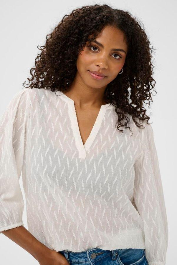 Bluse med 3/4 ermer og v-hals fra Kaffe.