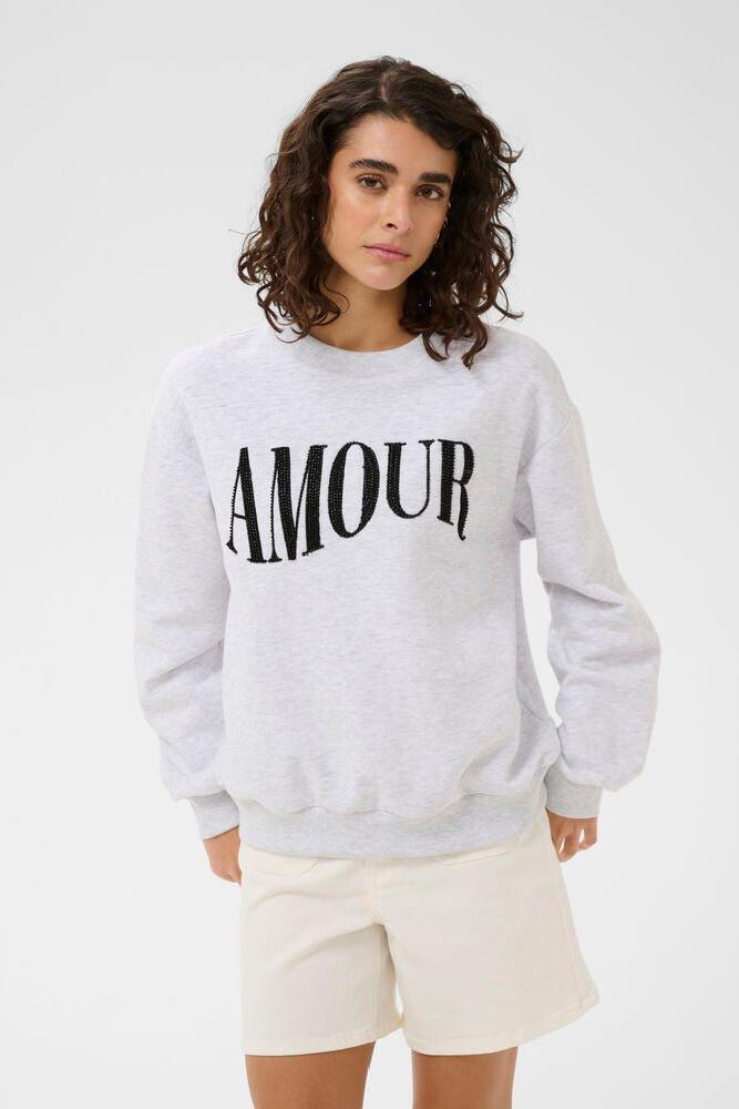 Rett sweatshirt. Mykt utseende, ribbestrikkede kanter og ermer gir en enkel, kul silhuett..