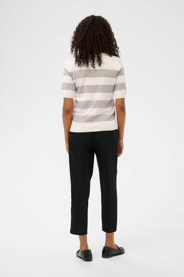 Denne dametoppen med striper har rett passform, rund hals og halv lange ermer. Mykt og behagelig strikkemateriale gir komfort hele dagen. Fra Kaffe