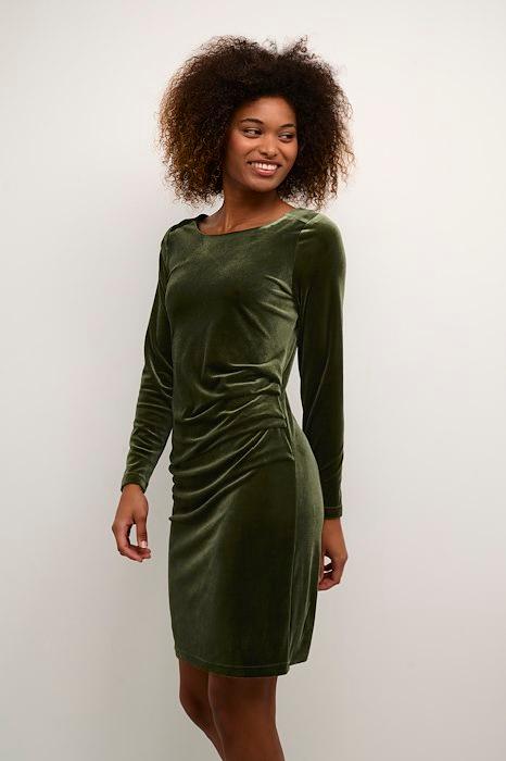 Velurkjole fra kaffe med nydelig passform. Kjolen har deilige lange ermer og lengde som treffer knehøyde. Kjolen passer perfekt til den kalde årstiden.