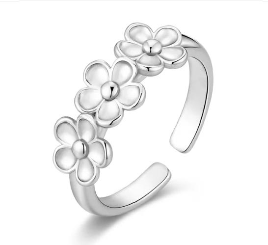Mira Plain ring i sølv, tre blomster på ringen.