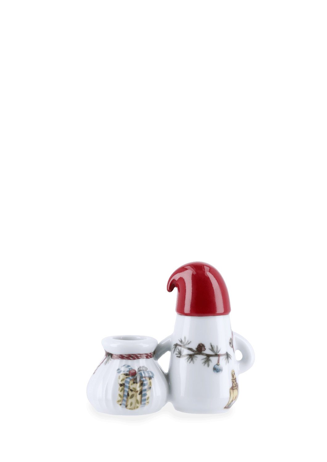 Juletradisjoner og håndverkstradisjoner i skjønn forening. Med den lille nissefamilien og gavene fra Kählers juleserie Hammershøi Christmas bringer du julestemningen inn i hjemmet med glade smil og sjarmerende julemotiver i et skulpturelt og markant design du kan kjenne – autentisitet og kreativt håndverk formet av tradisjon. Hammershøi Christmas-nissefar lysestake med gavesekk er utformet med myke linjer og har de ikoniske rillene fra Hammershøi-serien, som kjennetegner Hans-Christian Bauers servise og bordpynt.