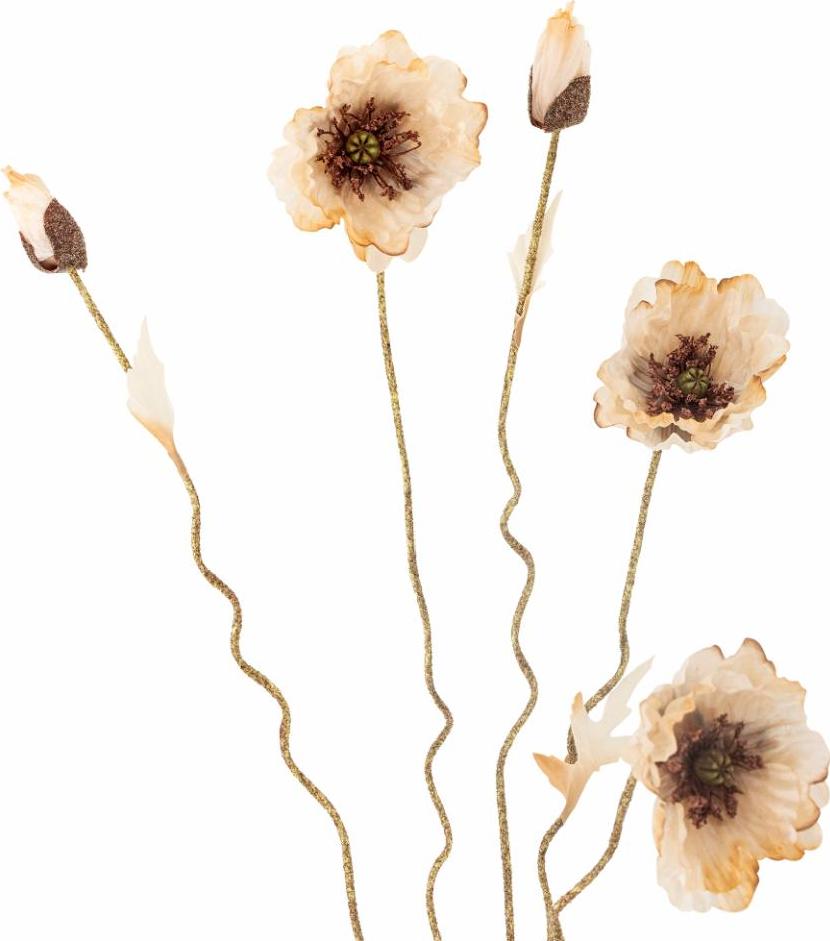 The Poppy Artificial Stem by Bloomingville is a versatile beauty that catches the eye, whether used solo or as part of a bouquet. Its subtle color play and natural shape make it ideal for mixing with other dried flowers. Shape the stem before use to bring out the natural look of the plant and adapt it to your personal decor.