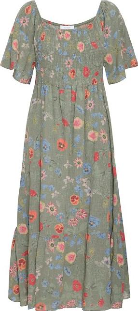 Kjole i 100% bomull fra Sorbet. Vaffelstrikk rundt bryst og rygg, lett og luftig.