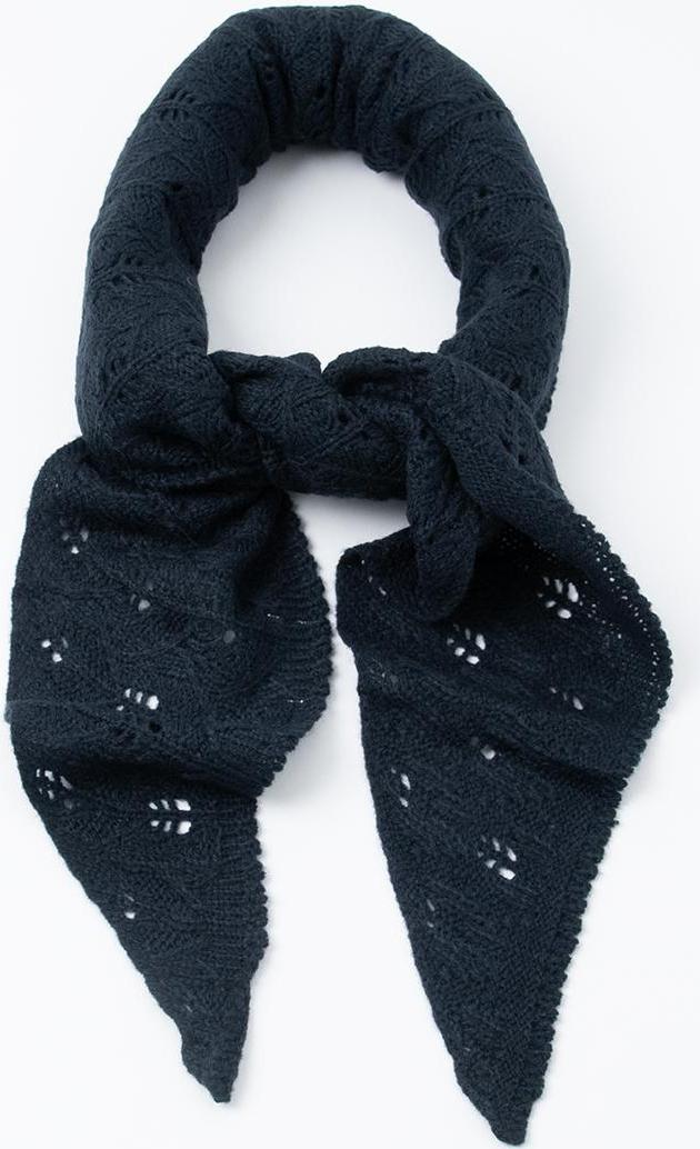 Et klassisk lite trekantskjerf i marineblå. Skjerfet er laget i 100 % akryl med en behagelig strikket kvalitet. Måler 115 cm i lengden og 37 cm på det bredeste – et tidløst tilbehør som passer til både hverdags og mer pyntede anledninger.